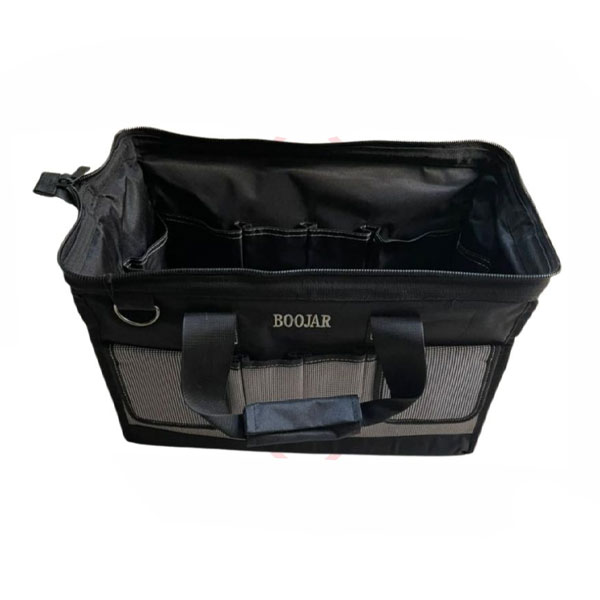 کیف ابزار بوجار دارای محفظه درونی برزنت دولایه و جایگاه متعدد برای ابزارآلات کوچک و انبرآلات و آچارآلات میباشد. این ابزار جانبی استفاده از پارچه دوبل برزنت و فوم در ما بین کار جهت ضد آب بودن است. این محصول دارای ده جیب داخلی و ده جیب بیرونی است. جنس کف این وسیله از پلاستیک نشکن ضد حلالی PVC میباشد.