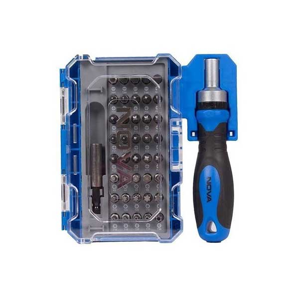 ست سر پیچ گوشتی نووا دارای جعبه پلیمری محکم برای قرار گرفتن تمام قطعات است. این ابزار دستی قابل نصب روی پیچ گوشتی دستی، شارژری و برقی میباشد. همچنین مقاوم در برابر فشار بالا و سایش است.