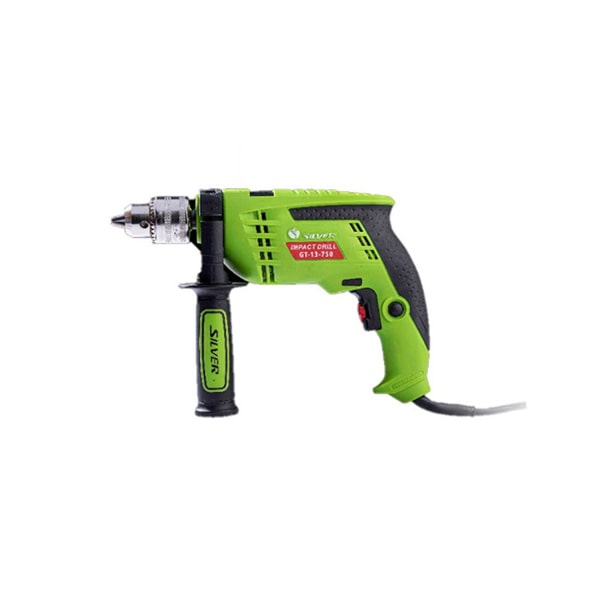 دریل چکشی 750 وات سیلور مدل GT-13-750 با ظرفیت سه نظام معمولی به بازار ابزارآلات صنعتی عرضه شده است . این دستگاه ساخته شده از مواد اولیه با کیفیت بیان شده است . همچنین دارای بدنه پلاستیکی و طراحی ارگونومیک بیان شده است .از دیگر مشخصه آن میتوان به دسته جانبی برای استفاده راحتتر , قابلیت چپ گرد و راست گرد و سه نظام آچاری اشاره کرد . قابلیت کنترل سرعت و قفل سوئیج از دیگر ویژگی آن میباشد .