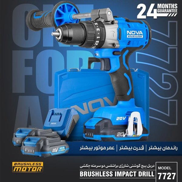 خرید دریل پیچگوشتی شارژی براشلس دو سرعته چکشی 20 ولت نووا 7727 از مهد ابزار، با توجه به کیفیت بالای این محصول، یک سرمایهگذاری ارزشمند برای افرادی است که به دنبال ابزار قدرتمند و کارآمد هستند. شما میتوانید برای دریافت مشاوره و اطلاعات بیشتر در مورد پیچگوشتی شارژی با کارشناسان مهد ابزار تماس بگیرید. همچنین ارسال این دستگاه به سراسر کشور امکانپذیر است تا شما در هر نقطهای که هستید، بتوانید از این ابزار عالی بهرهبرداری کنید.