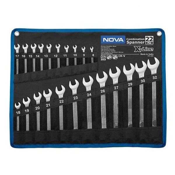 آچار یکسر رینگی نووا با کاملترین ستها با 22 عدد رینگ و یکسر تخت بیان شده است. این ابزار دستی رفع نیاز باز و بسته شدن انواع مهرهها و پیچها در سایزهای متنوع فراهم میکند. ضد زنگ و ضد خوردگی بودن به واسطه پوششی از جنس کروم آبکاری شده از ویژگی این محصول به شمار میآید.