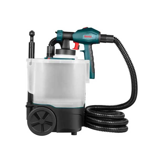پیستوله برقی رونیکس مناسب جهت کلیه مصارف عمومی و خانگی و دارای طراحی ویژه قسمت تفنگی پیستوله به منظور پاشش سریع جهت تسهیل فرآیند کار است. این ابزار برقی دارای 2 عدد نازل 1.8 میلیمتری و 2.6 میلیمتری جهت استفاده اثربخش در شرایط مختلف رنگپاشی میباشد.