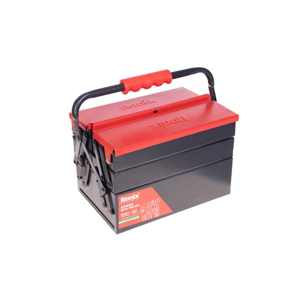 جعبه ابزار فلزی رونیکس تولید شده از ورق فولادی ضد زنگ و مقاوم به بازار ابزارآلات صنعتی عرضه شده است. در این ابزار از پرچهای فولادی مقاوم در کلیه اتصالات جهت عمر طولانیتر و کارایی بیشتر استفاده شده است. همچنین رنگ بدنه آن به روش کورهای الکترواستاتیک و ضد خش بیان شده است. جهت سهولت حمل از روکش دسته ABS ارگونومیک استفاده کردهاند. از دیگر مشخصه آن میتوان به درب اتوماتیک و طراحی داخلی کارا اشاره کرد.